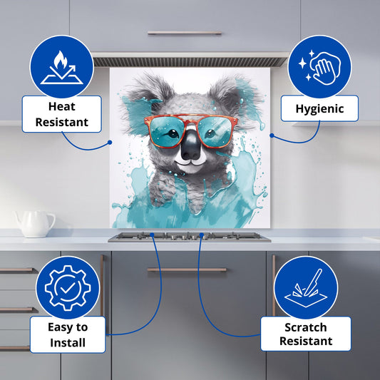 Colourful Splashart Koala In Glasses Kitchen Splashback