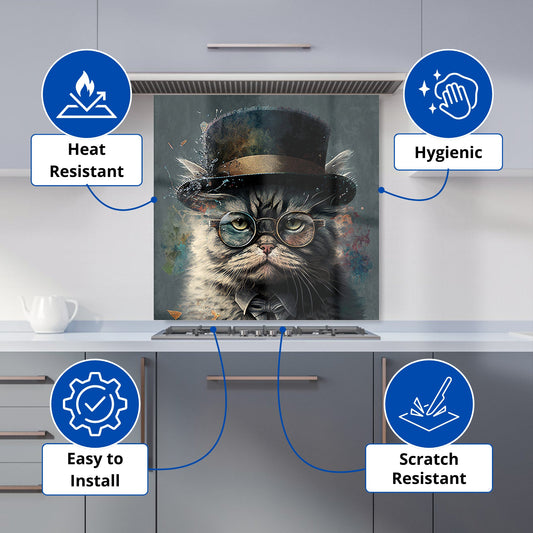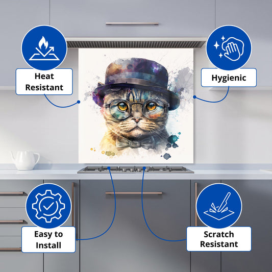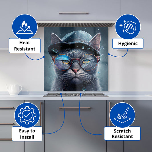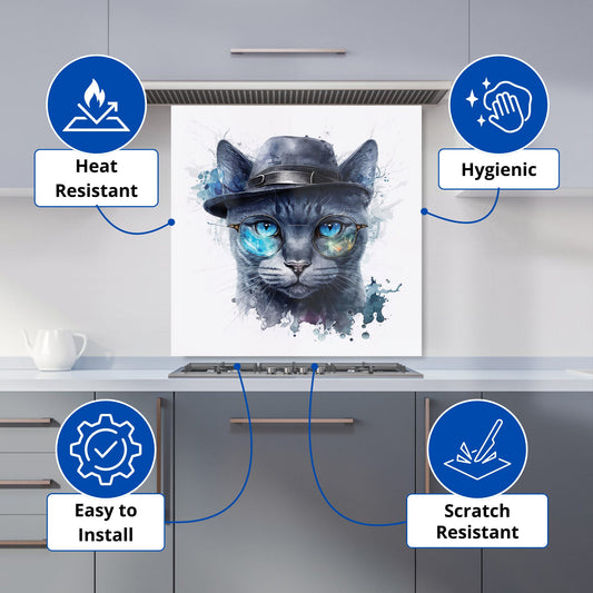 Russian Blue Cat With Glasses Splashart Kitchen Splashback