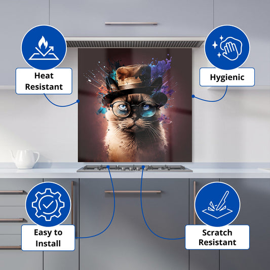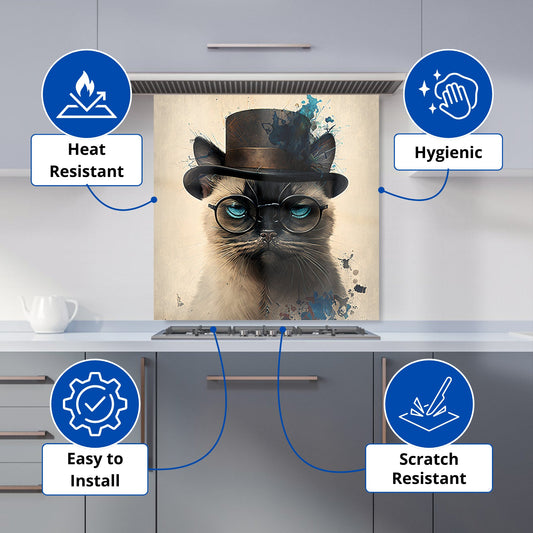 Siamese Cat With Glasses Splashart Kitchen Splashback