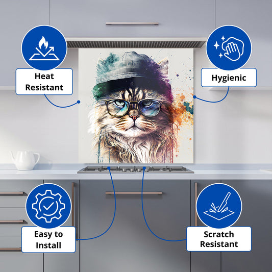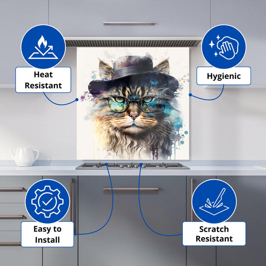 Persian Cat With Glasses Splashart Kitchen Splashback