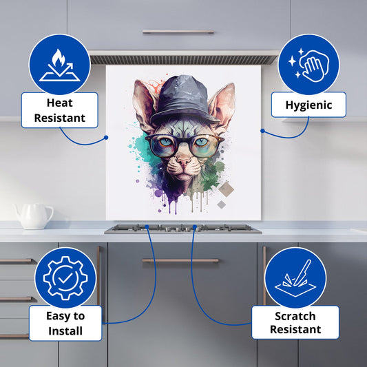 Sphynx Cat With Glases Splashart Kitchen Splashback