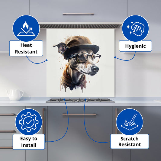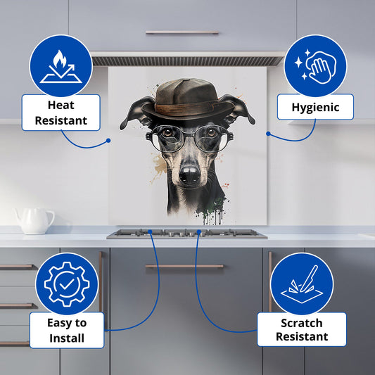 Whippet Dog With Glasses Splashart Kitchen Splashback