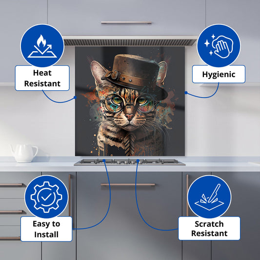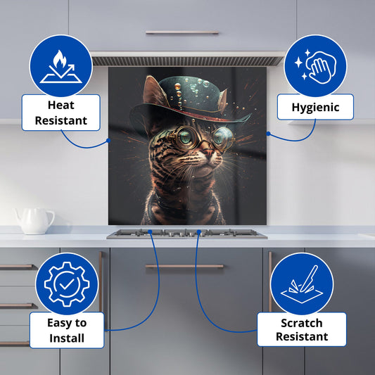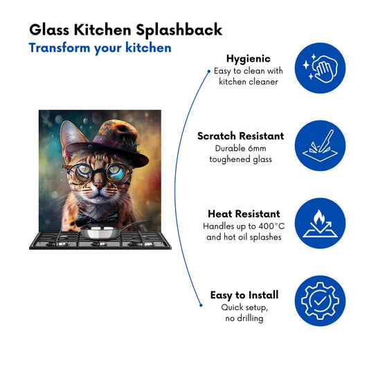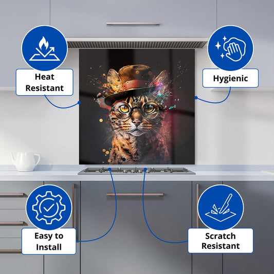 Bengal Cat With Glasses Splashart Kitchen Splashback