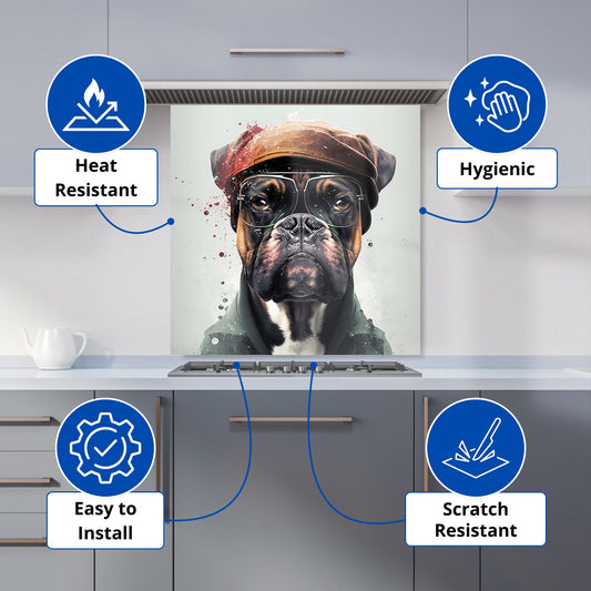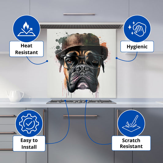 Boxer Dog With Glasses Splashart Kitchen Splashback