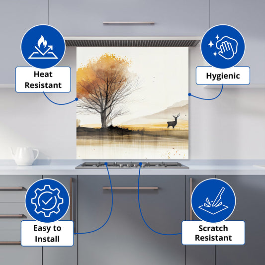Autumn Landscape Stag Watercolour Kitchen Splashback