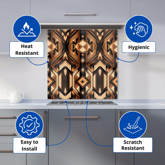 Brown And Blue Geometric Pattern Kitchen Splashback