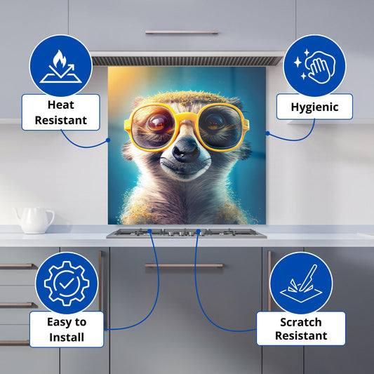 Meerkat With Golden Glasses Splashart Kitchen Splashback