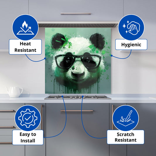 Panda With Glasses, Green Splashart Kitchen Splashback