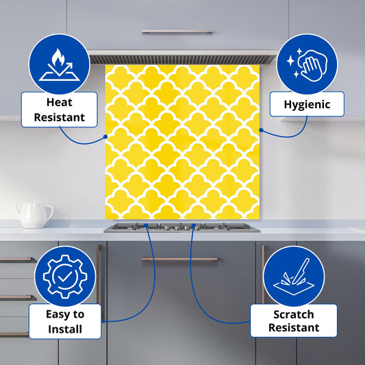 Geometric Yellow Quatrefoil Wave Kitchen Splashback