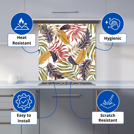 Abstract Bright Colorful Tropical Leaves Kitchen Splashback