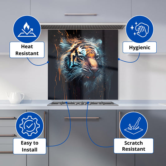 Tiger Face Splashart Dark Background Kitchen Splashback