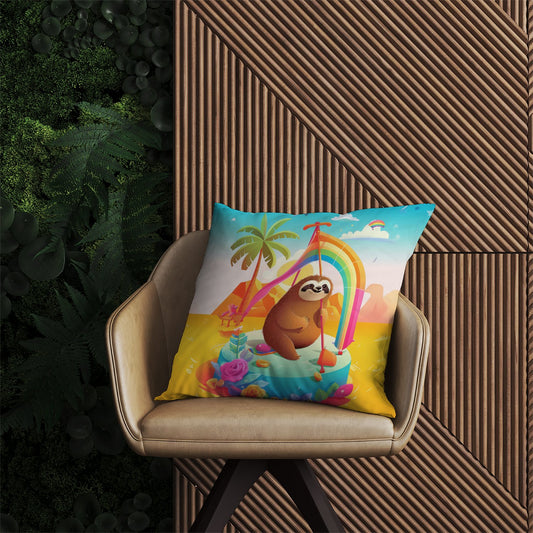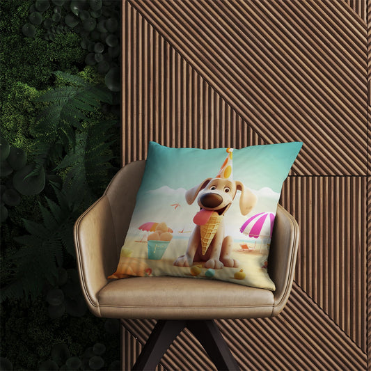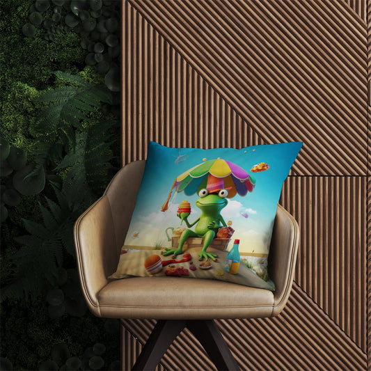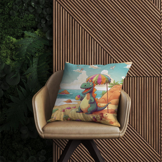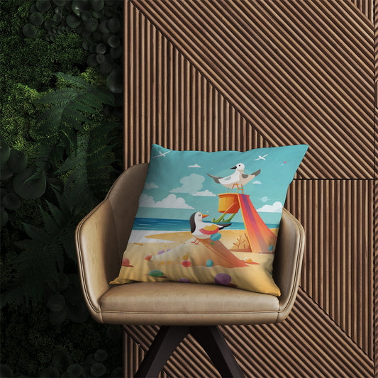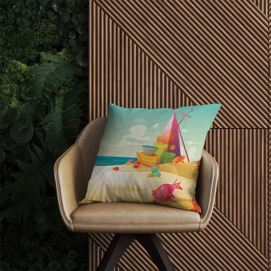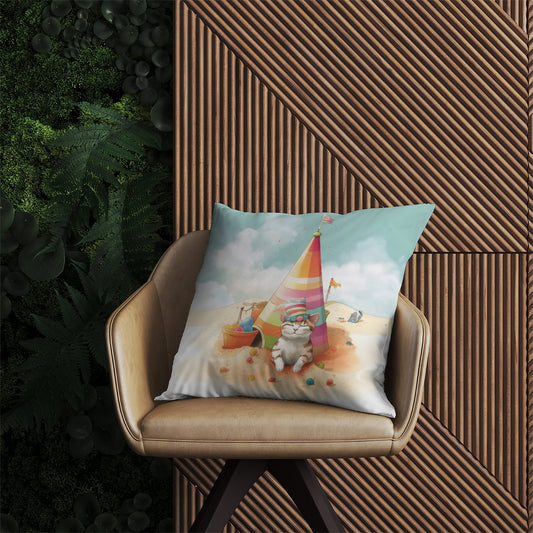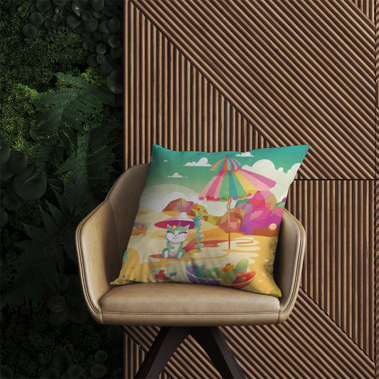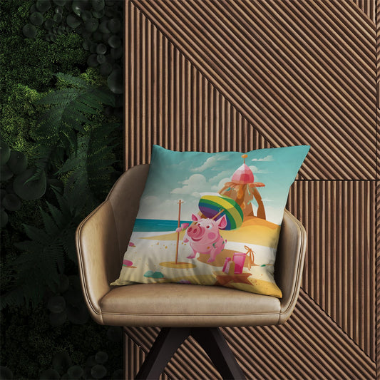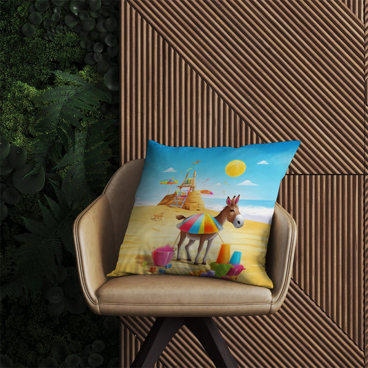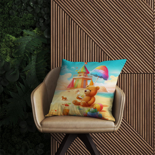 Teddy Bead On A Beach Holiday Outdoor Cushion
