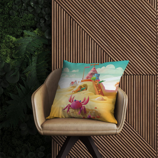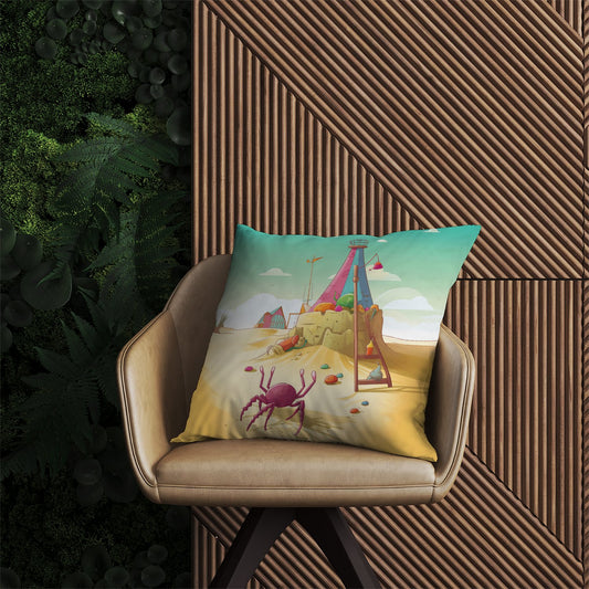 Pink Crab On A Beach Holiday Outdoor Cushion