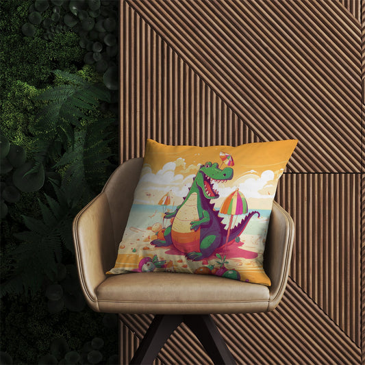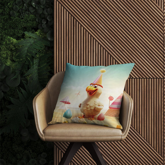 Funky Chicken On A Beach Holiday Outdoor Cushion