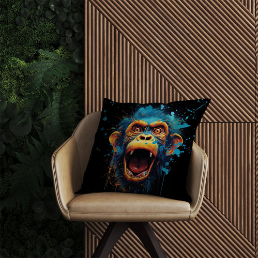 Coloured Splashart Crazy Monkey Face Outdoor Cushion