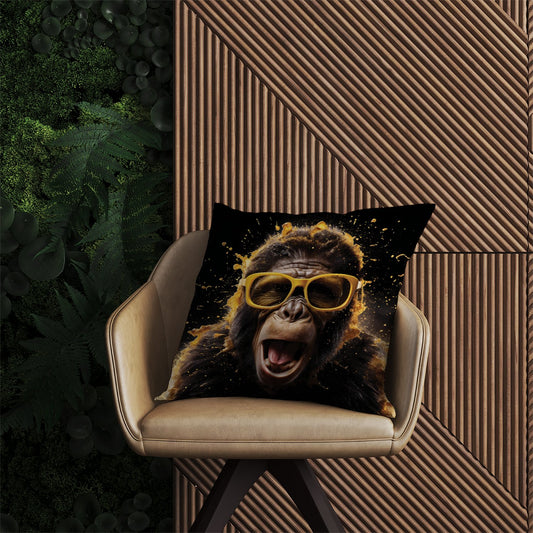 Splashart Monkey Face With Yellow Glasses Outdoor Cushion