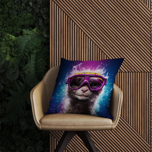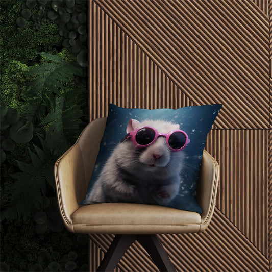 Splashart DoorMouse with Pink Glasses Outdoor Cushion
