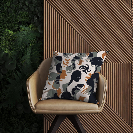Abstract Grey Brown Silhouette Outdoor Cushion