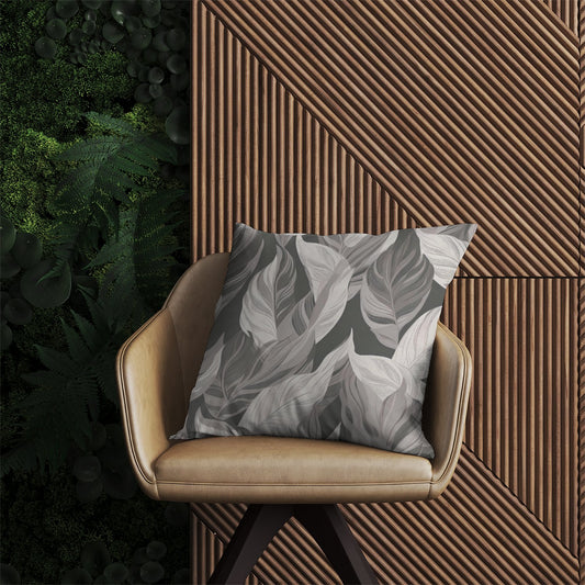 Grey Floral Leaves Outdoor Cushion