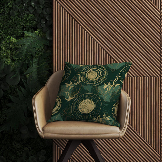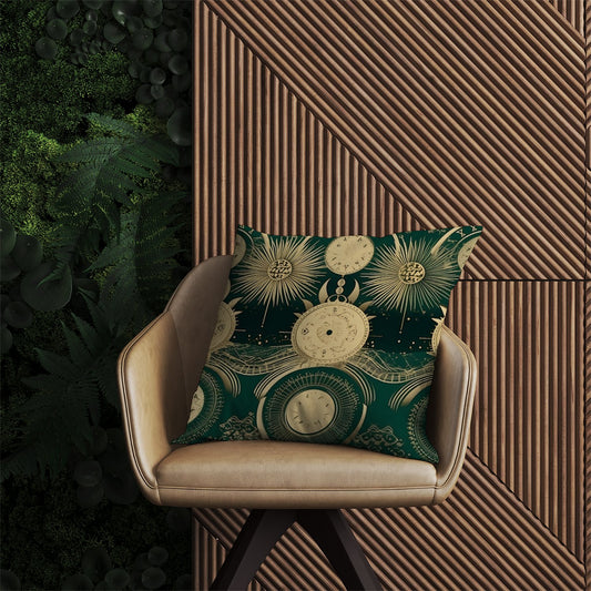 Abstract Green Gold Moon Pattern Outdoor Cushion