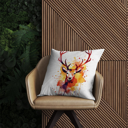 Watercolour Stag Face Outdoor Cushion