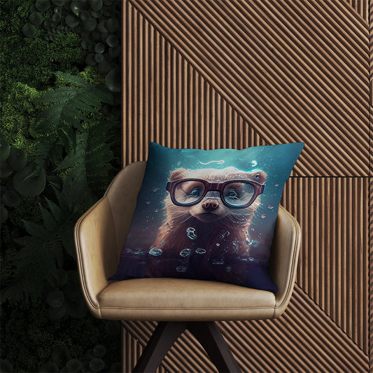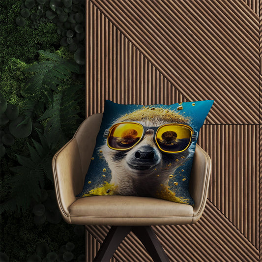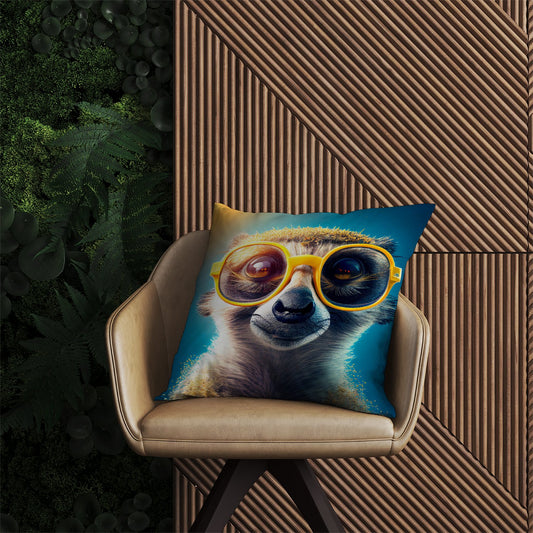 Meerkat With Golden Glasses Splashart Outdoor Cushion