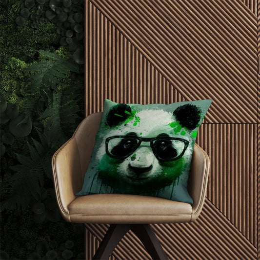 Panda With Glasses, Green Splashart Outdoor Cushion