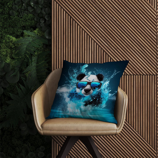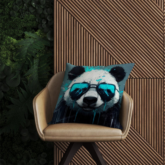 Panda With Blue Glasses Splashart Outdoor Cushion