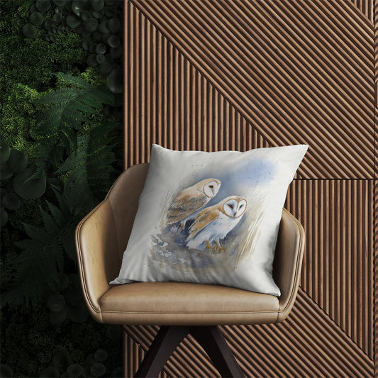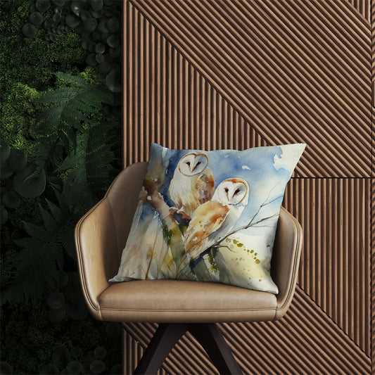 Barn Owls Watercolour Outdoor Cushion