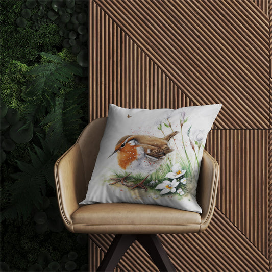 Robin And Daisies Watercolour Outdoor Cushion