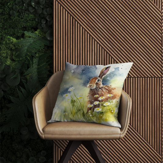 Hare And Daisies Watercolour Outdoor Cushion