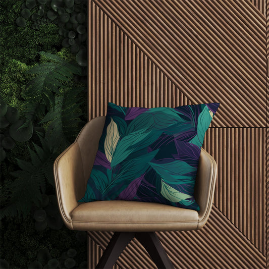 Autumn Tropical Leaves Green Brown Outdoor Cushion