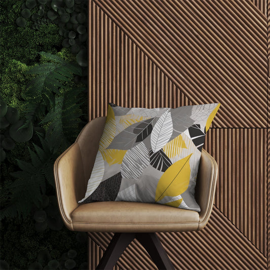 Grey Yellow Autumn Leaves Outdoor Cushion