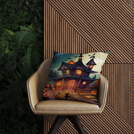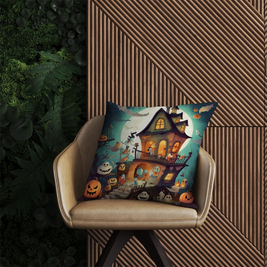 Illustrations A Whimsical Haunted House Outdoor Cushion