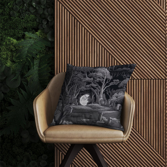 A Breathtaking Scene Of A Moonlit Graveyard Outdoor Cushion