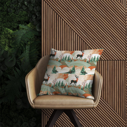 Reindeer On A Snowy Landscape Pattern Outdoor Cushion