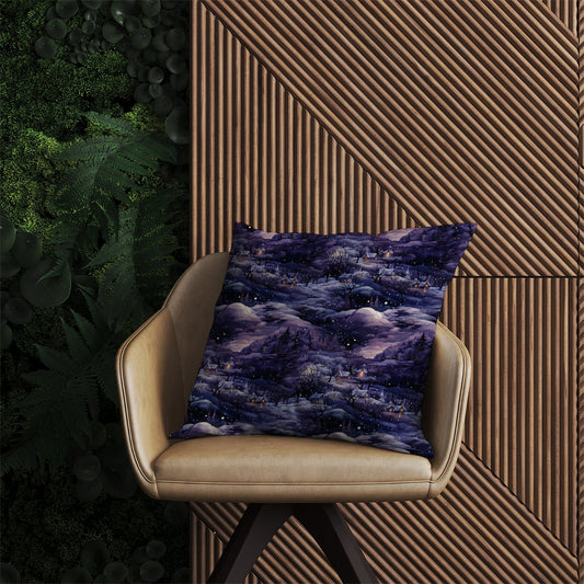 Snowy Christmas Village On A Starry Night Outdoor Cushion