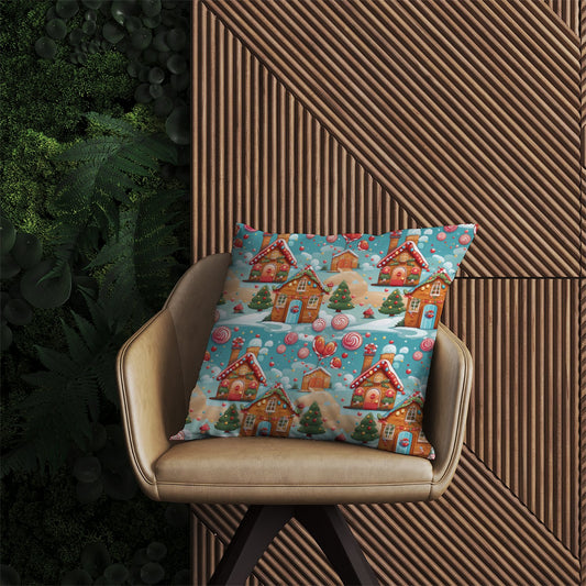 Whimsical Gingerbread House Pattern Outdoor Cushion
