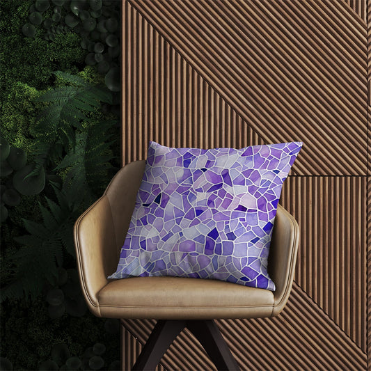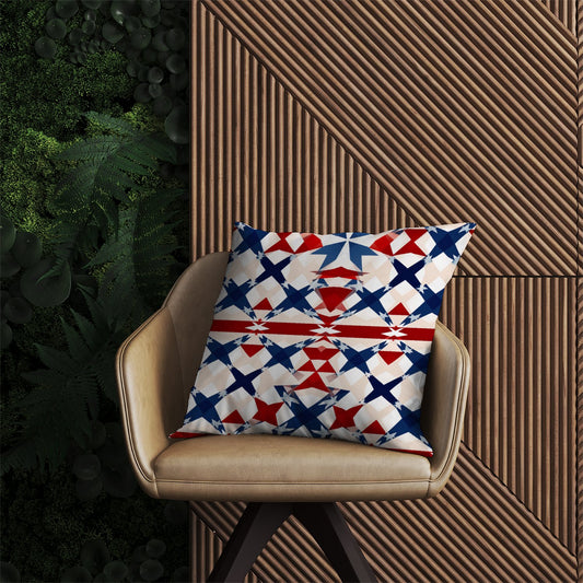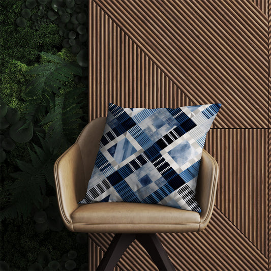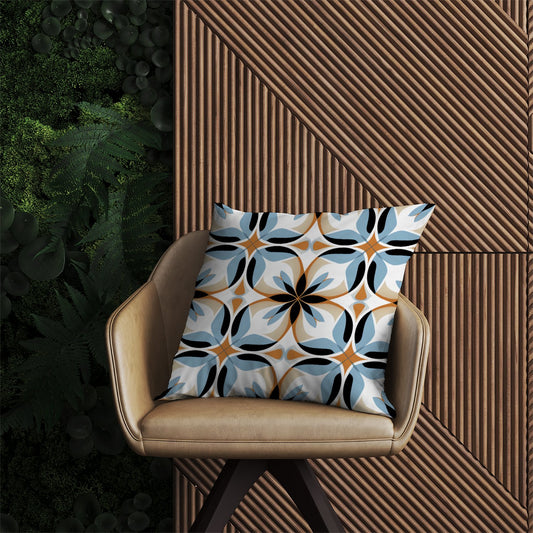 White Brown and Blue Geometric Pattern Outdoor Cushion