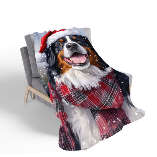 Christmas Bernese Mountain Dog Sherpa Blanket