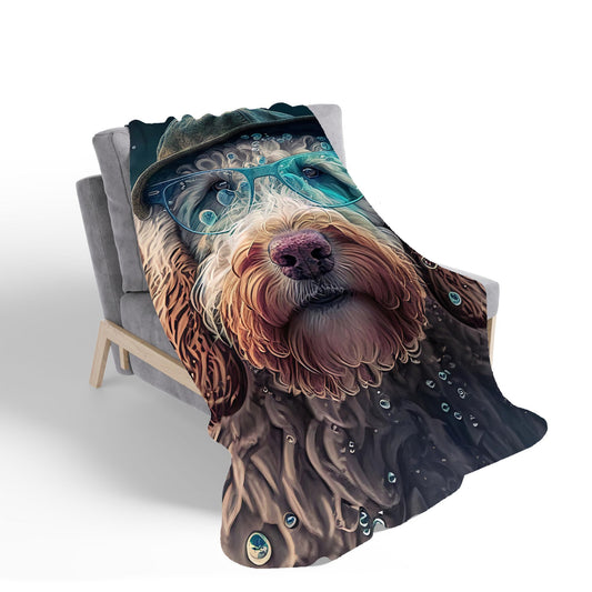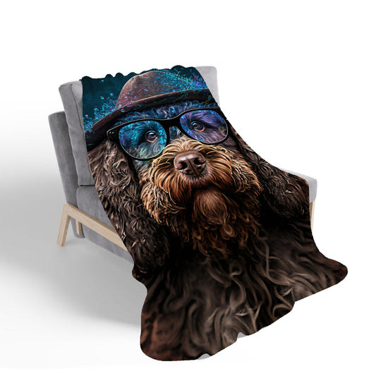 Labradoodle Dog With Glasses Splashart Sherpa Blanket