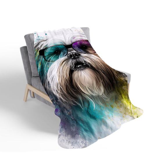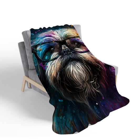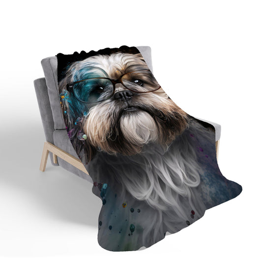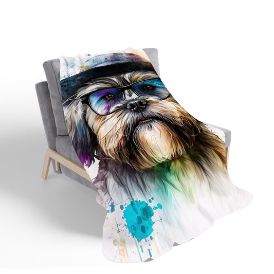 Lhasa Apso Dog With Glasses Splashart Sherpa Blanket