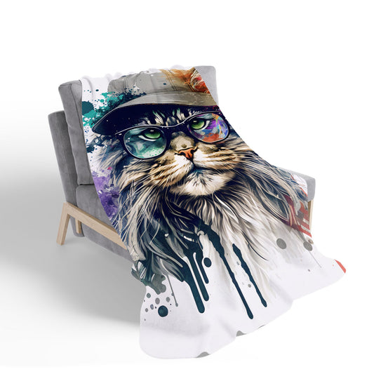Maine Coon Cat Splashart Sherpa Blanket