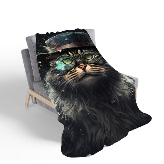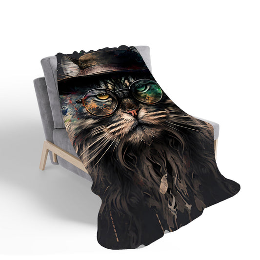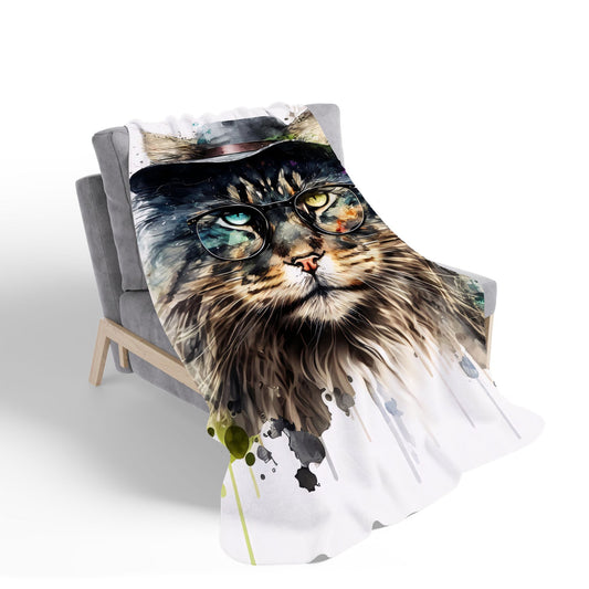 Maine Coon Cat With Glasses Splashart Sherpa Blanket
