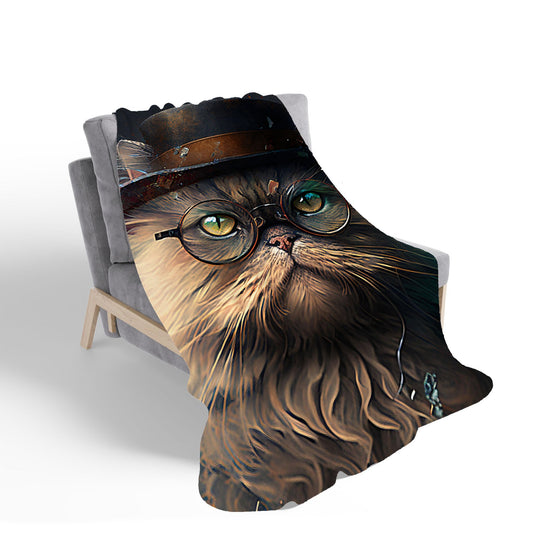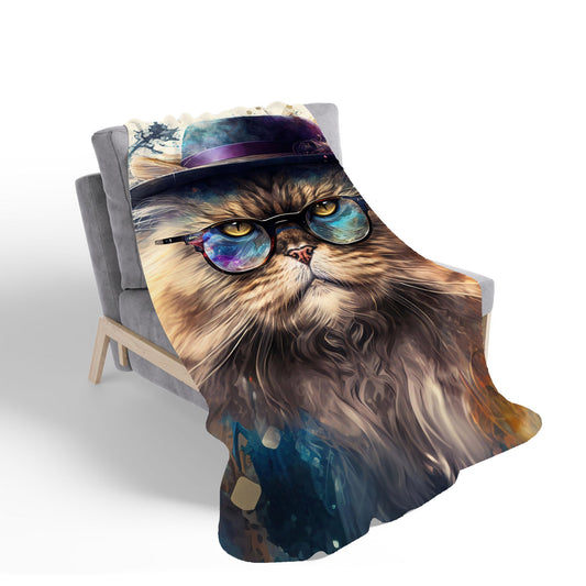 Persian Cat With Glasses Splashart Sherpa Blanket