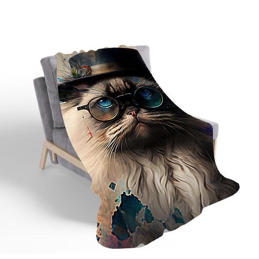 Ragdoll Cat With Glasses Splashart Sherpa Blanket