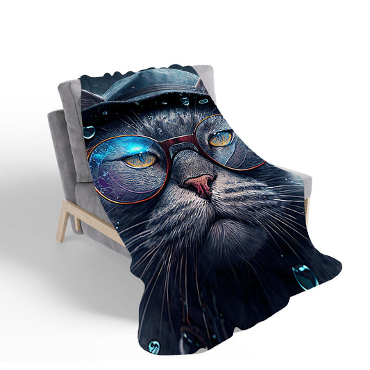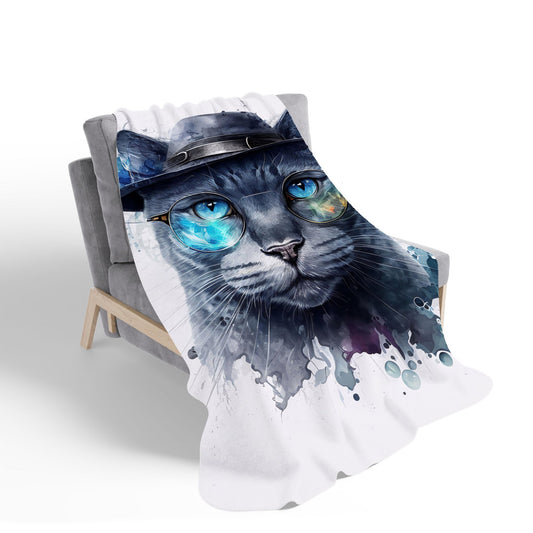 Russian Blue Cat With Glasses Splashart Sherpa Blanket