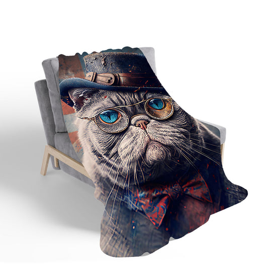 Shorthair Cat With Glasses Splashart Sherpa Blanket