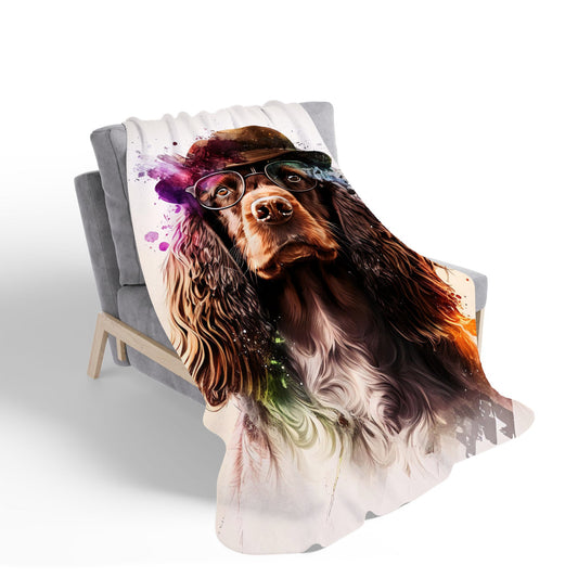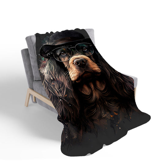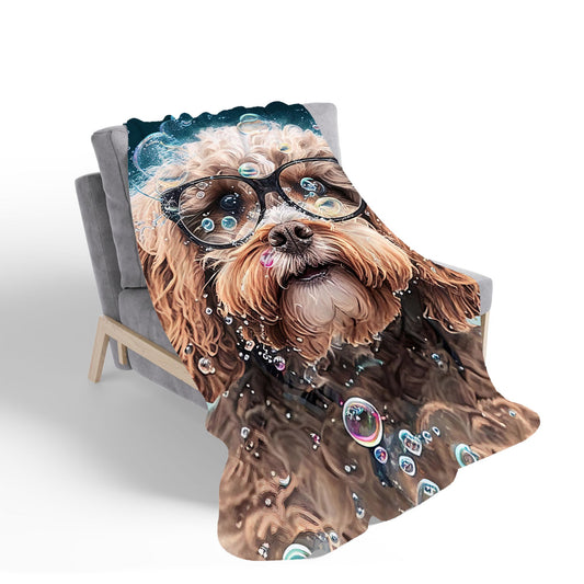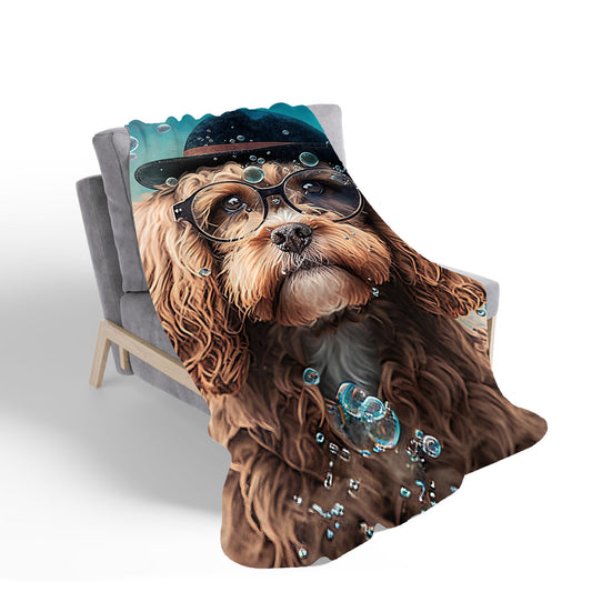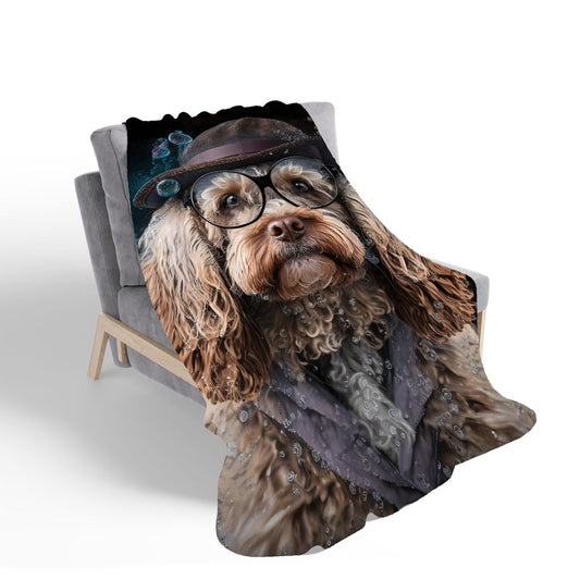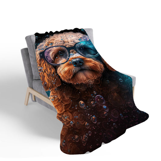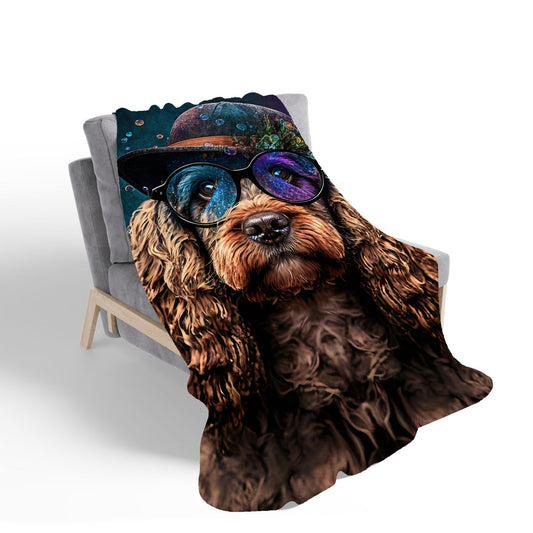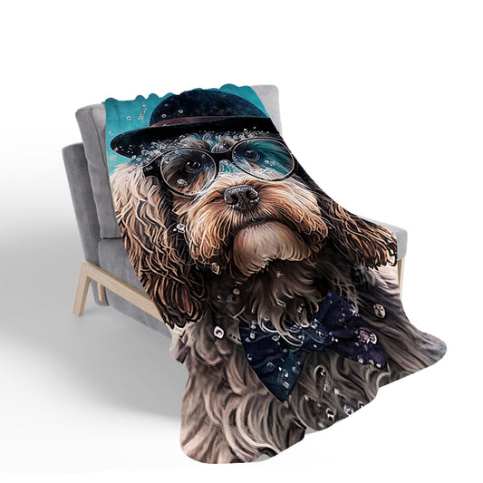 Cockapoo Dog With Glasses Splashart Sherpa Blanket