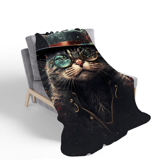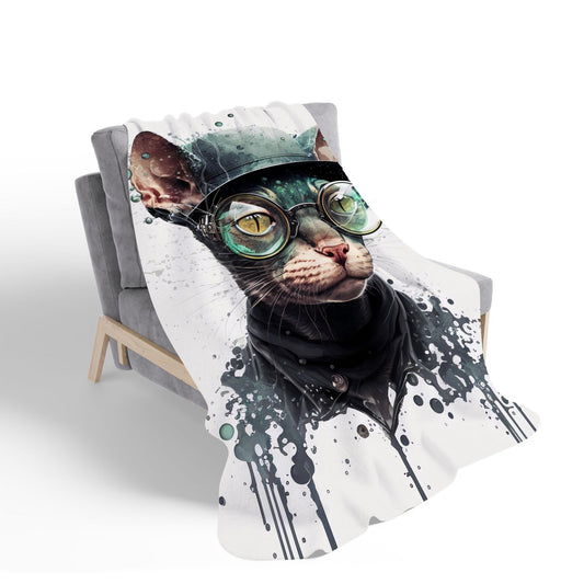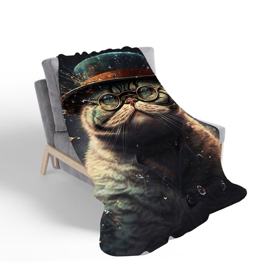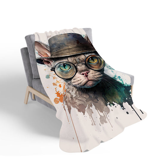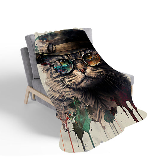 Cat With Glasses And Hat Splashart Sherpa Blanket
